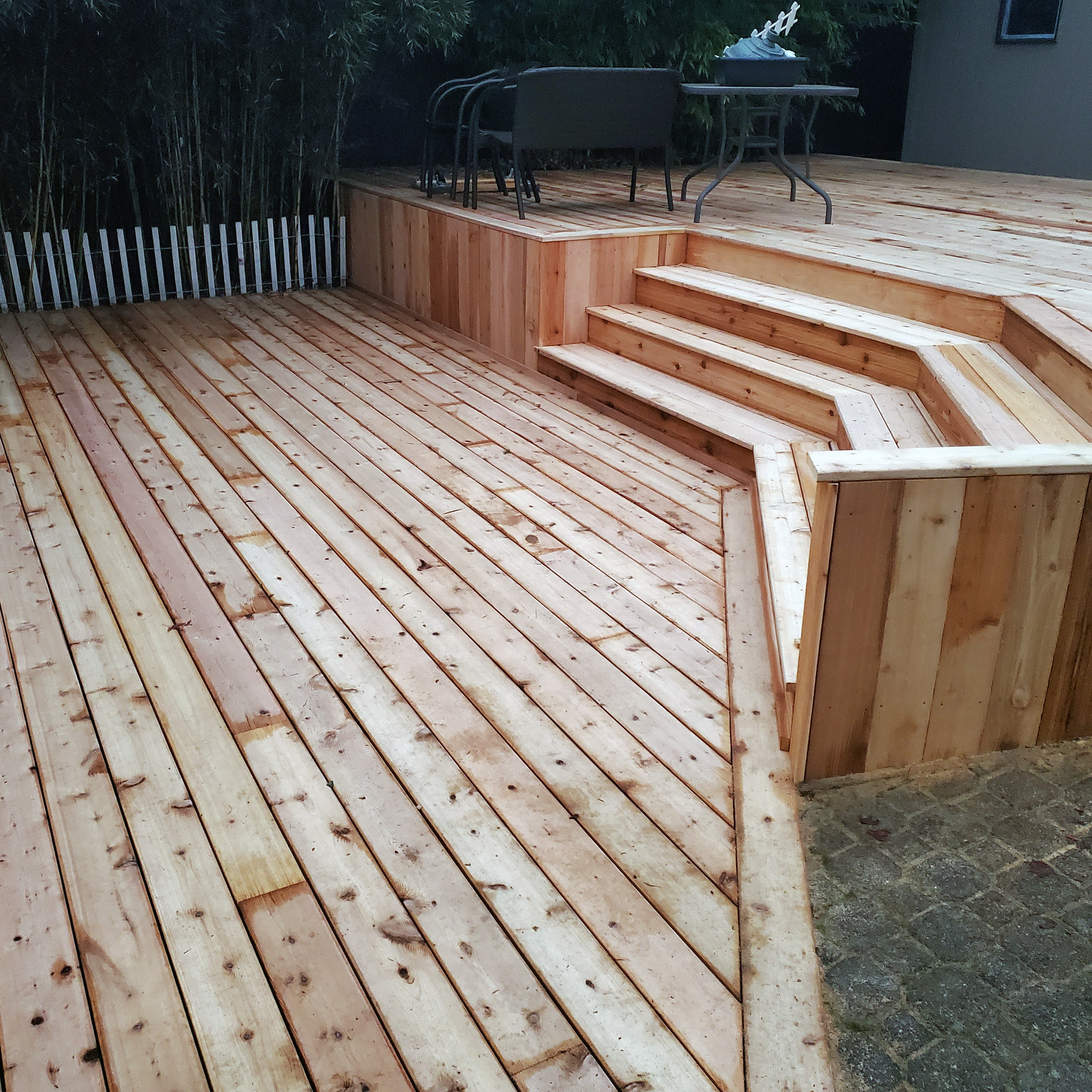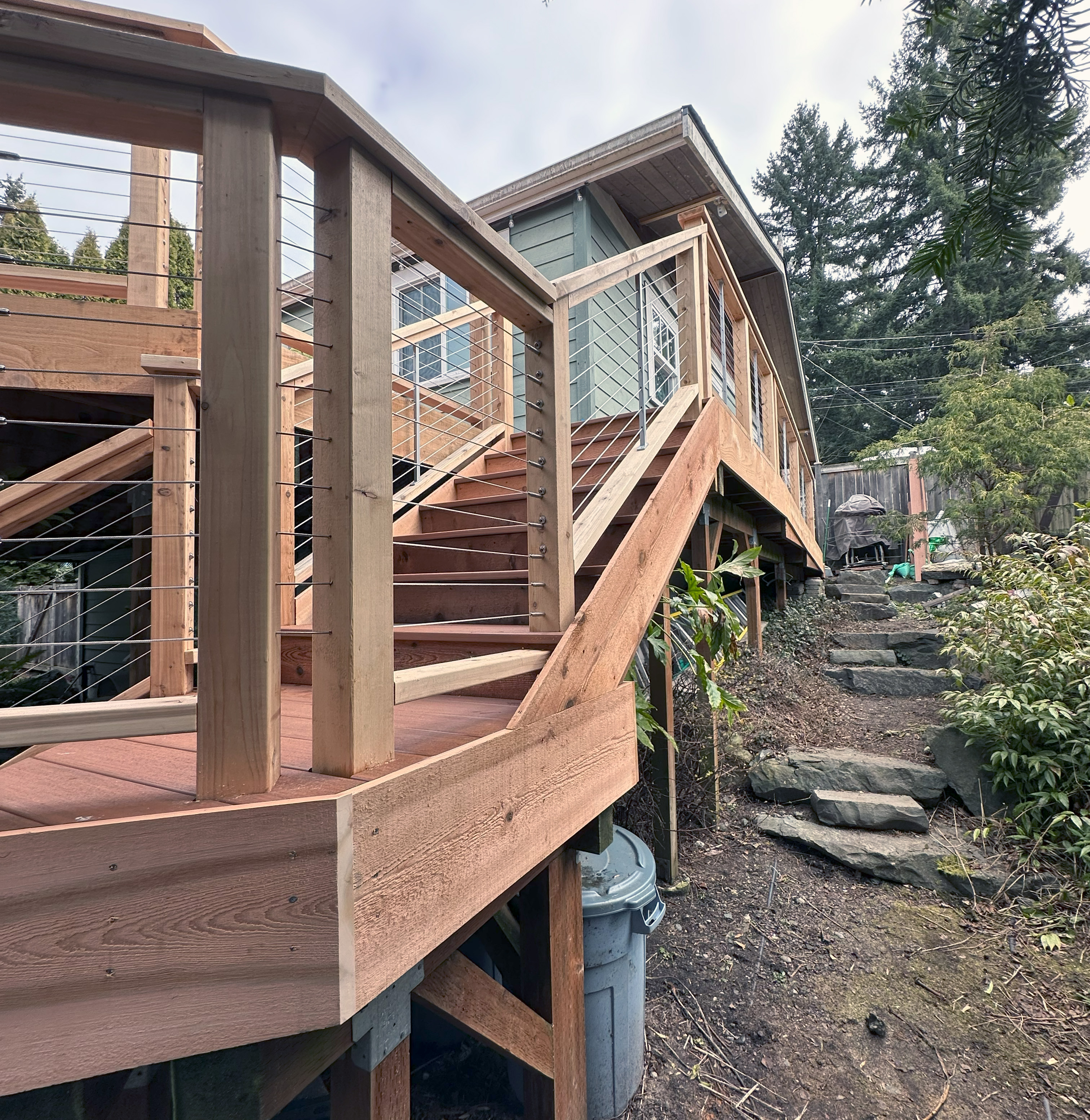 - Composite/PVC Decking, Cedar, Hardwood, Post-on-Pipe, Metal and Cable Railings, Hogwire, Low Voltage Deck Lighting